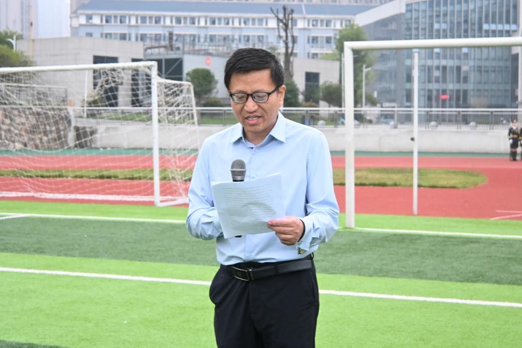 党委书记阮东彪以“赓续红色血脉,矢志数统报国——在时代坐标中书写青春华章”为题发表国旗下讲话。阮东彪以抗日战争胜利80周年、新中国成立76周年等重要历史节点为背景,深情回顾学校作为“红色摇篮”的光荣历史,追忆毛泽东、何叔衡等一代代一师人的奋斗足迹与精神传承。阮东彪鼓励同学们:一要永葆赤子之心,以家国为魂,将个人理想融入国家发展;二要坚守荣校之志,以传承为脉,弘扬校训精神,共铸88看球