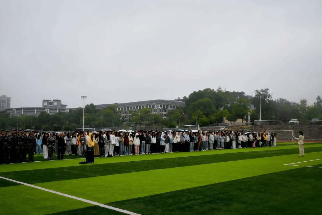 细雨初歇、晨光微露,全体师生整齐列队,庄严肃立。仪式在铿锵有力的步伐中拉开帷幕,国旗护卫队护卫着五星红旗行进至升旗台。伴随着雄壮的国歌,鲜艳的国旗冉冉升起,雨水未能阻挡坚定的目光,全体师生高唱国歌,注目国旗,激昂的旋律回荡在校园上空,展现了数统88看球