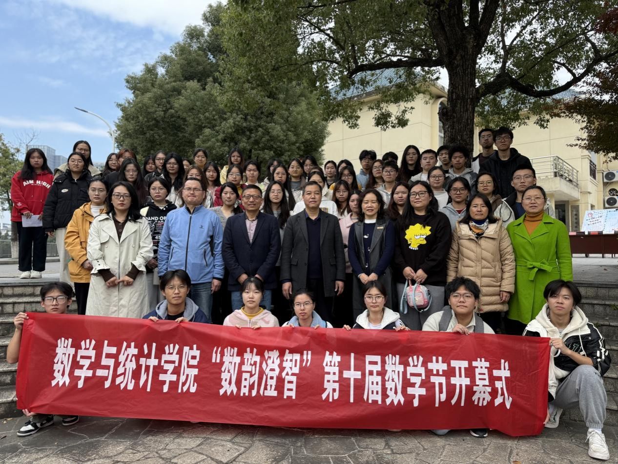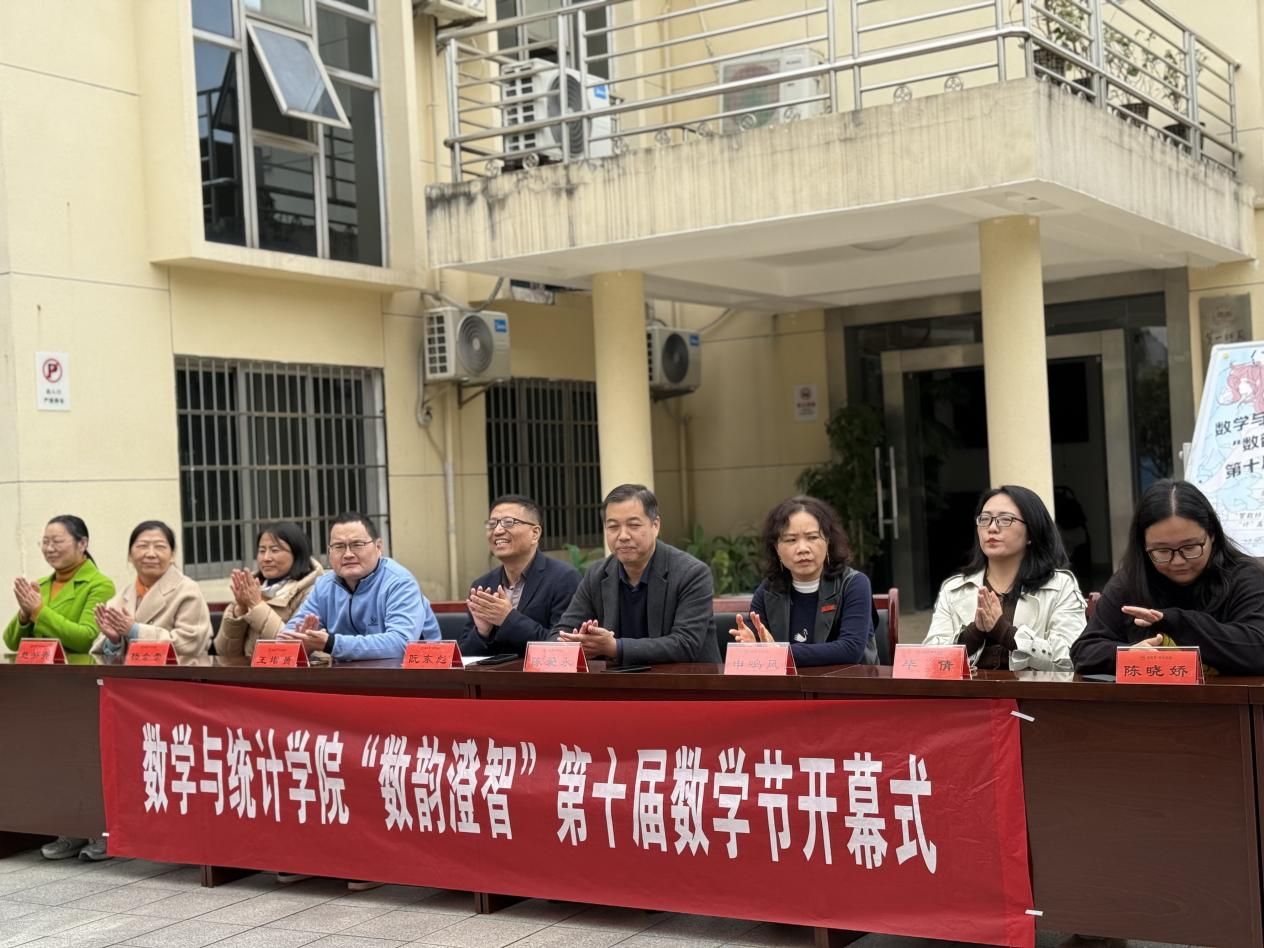 开幕式的最后,与会领导共同在签名板上签名,并与学生代表合影留念,为本届数学节留下了温暖的瞬间。在全体师生的共同见证下,第十届数学节系列活动正式拉开序幕。期待同学们在接下来的各项活动中,尽情探索数学之美,领略思维之妙,在公式与灵感之间,感受数学独有的深邃与浪漫。