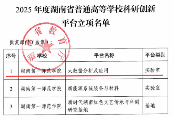 近日,湖南省教育厅印发《湖南省教育厅关于公布2025年度湖南省普通高等学校科研创新平台立项名单的通知》(湘教通[2025]233号),88看球