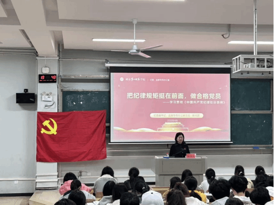 陈天涯重点围绕新修订的《中国共产党纪律处分条例》,系统解读了政治纪律、组织纪律、廉洁纪律、群众纪律、工作纪律、生活纪律等“六大纪律”核心要求,结合青年学生成长实际,梳理常见纪律风险点,提醒大家时刻自重自省自警自励,扣好廉洁从政、廉洁修身的“第一粒扣子”。