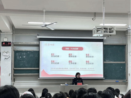 第37期入党积极分子培训班讲授纪律教育专题党课。学生第二党支部书记毕倩主持报告会,全体积极分子及学生党支部相关工作人员参加学习。