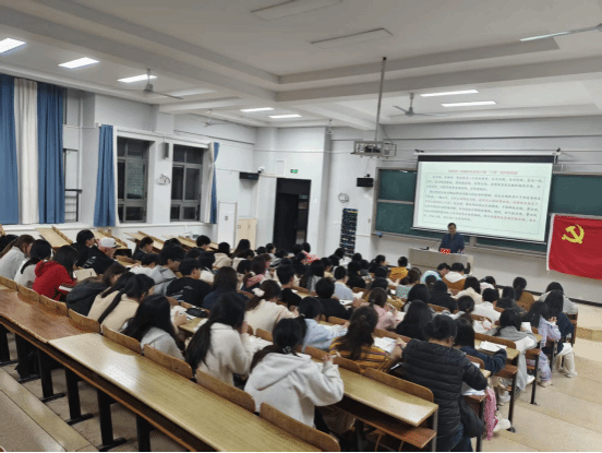 第37期入党积极分子培训班全体学员以及学生党支部全体党员、预备党员参加学习。