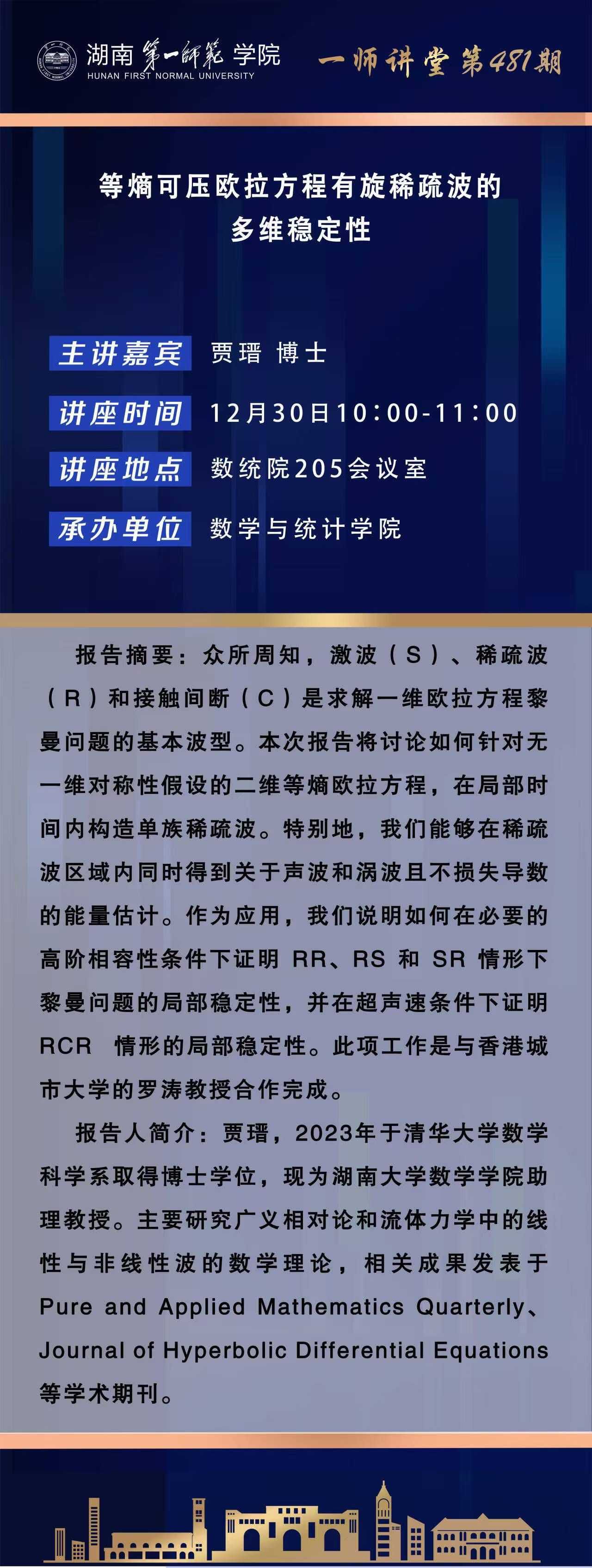 学术报告|数学高峰讲坛第81期:等熵可压欧拉方程有旋稀疏波的多维稳定性