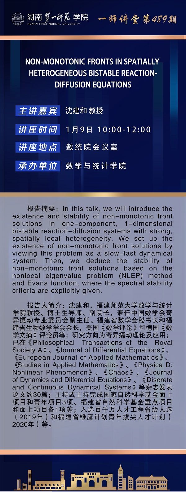 学术报告|数学高峰讲坛第83期:Non-monotonic fronts in spatially heterogeneous bistable reaction-diffusion equations 发布时间:2026-01-08 作者: 浏览次数:次