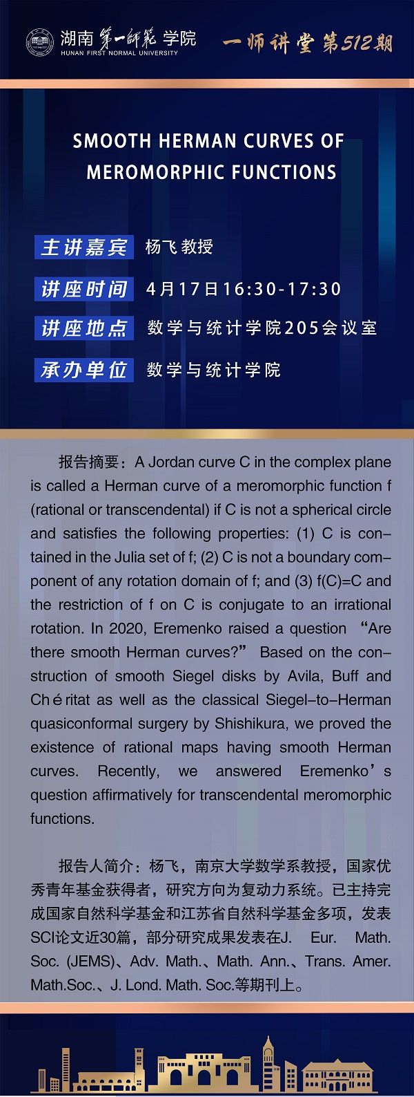 学术报告|数学高峰讲坛第90期:Smooth Herman curves of meromorphic functions