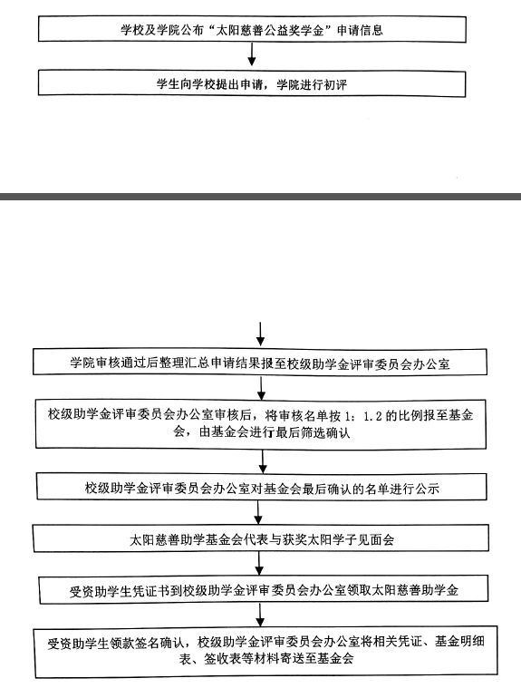 (1)《太阳慈善公益奖学金申请表》(详见附件1)。其中“申请理由”一栏在填写前先了解一下“太阳慈善助学基金会”,条理清晰地列出3-5条理由。要求用A4纸双面打印。