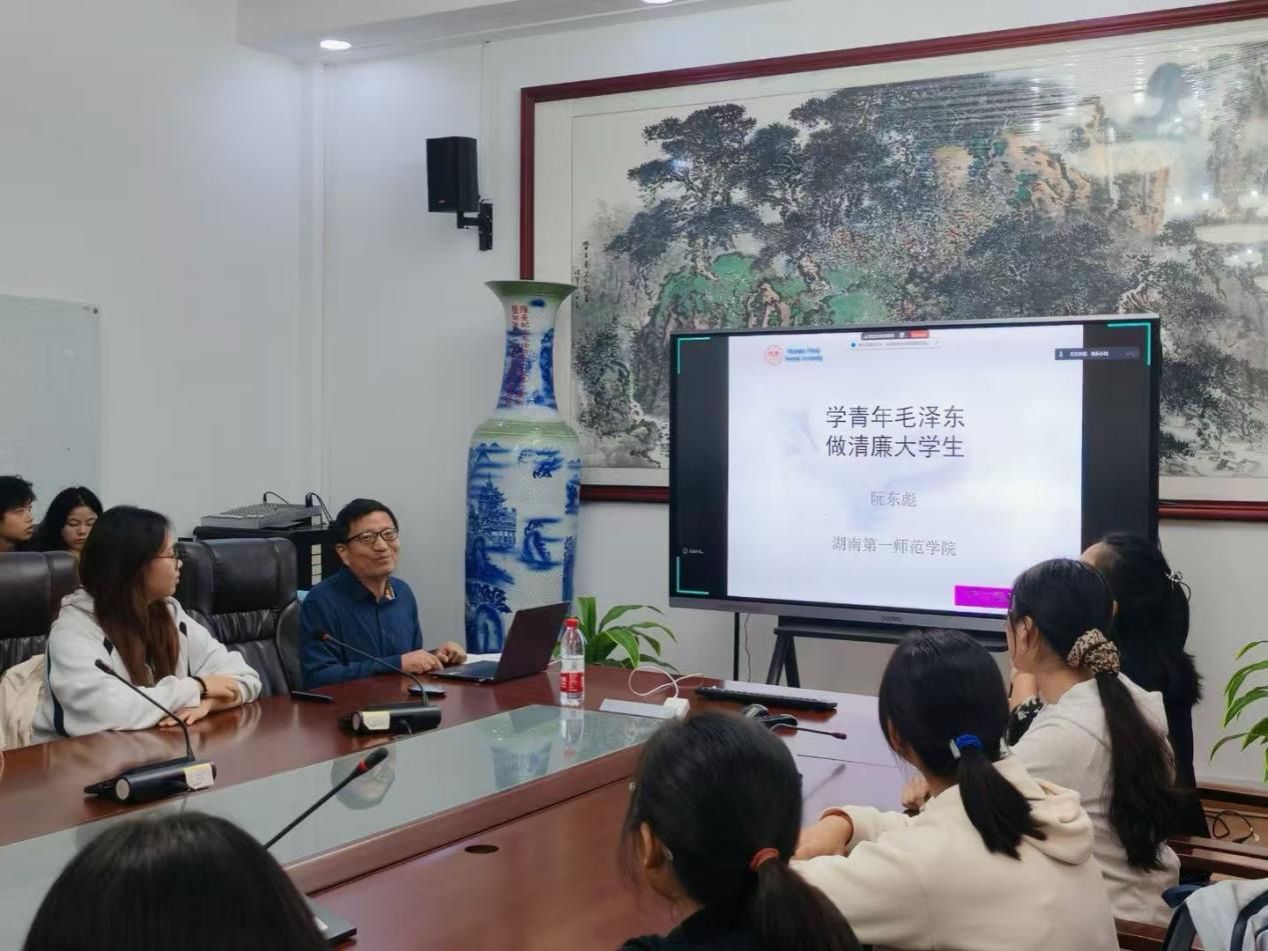 党委书记阮东彪主讲《学青年毛泽东,做清廉大学生》的廉洁专题讲座。88看球